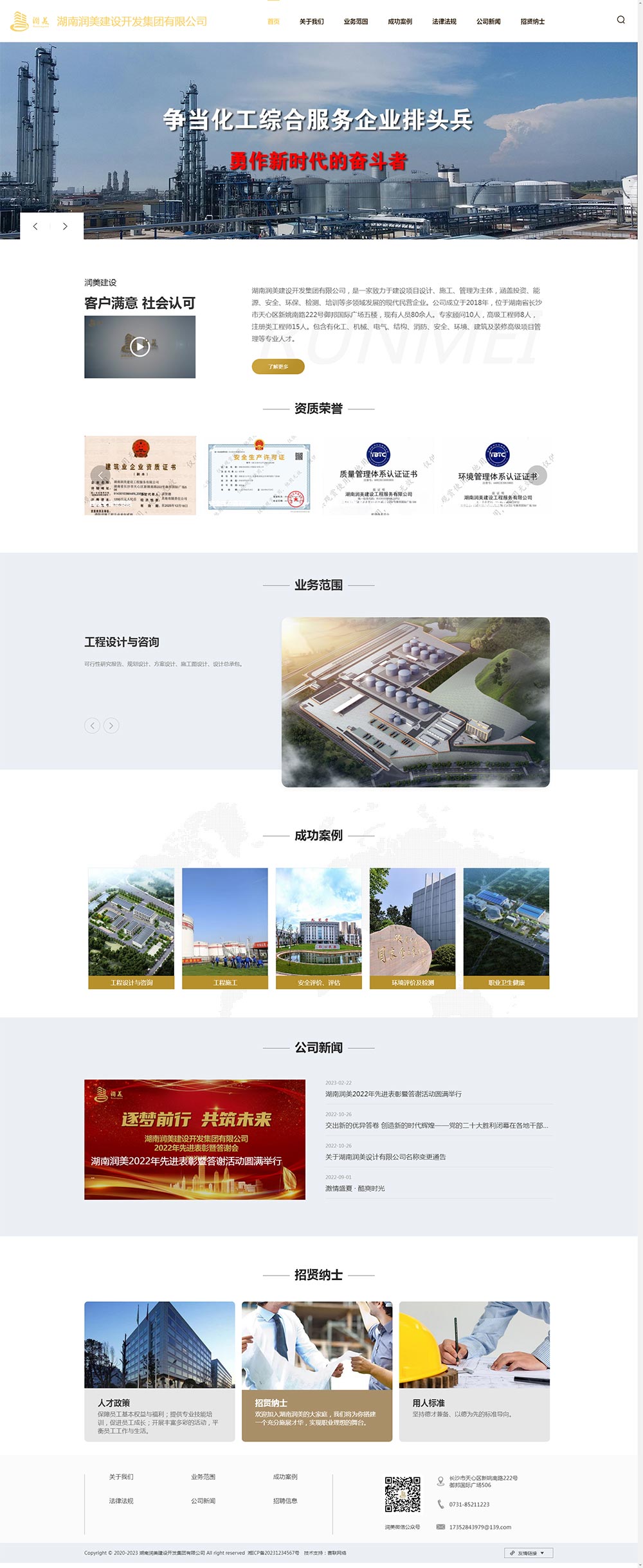 湖南潤美建設開發(fā)集團有限公司,是一家致力于建設項目設計、施工、管理為主體,涵蓋投資、能源、安全、環(huán)保、檢測、培訓等多領域發(fā)展的現(xiàn)代民營企業(yè)。公司成立于2018年,位于湖南省長沙市天心區(qū)新姚南路222號御邦國際廣場五樓,現(xiàn)有人員80余人。專家顧問10人,高級工程師8人,注冊類工程師15人。包含有化工、機械、電氣、結(jié)構(gòu)、消防、安全、環(huán)境、建筑及裝修高級項目管理等專業(yè)人才。