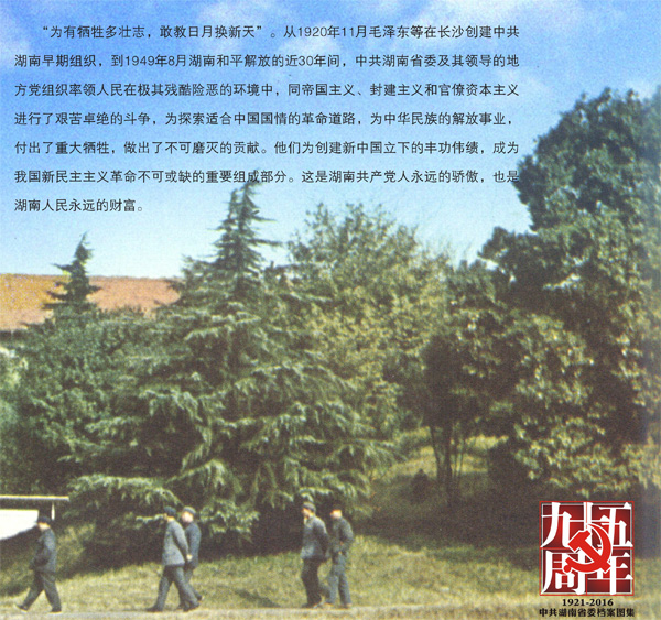 “為有犧牲多壯志,敢教日月?lián)Q新天”。從1920年11月毛澤東在長沙創(chuàng)建中共湖南早期組織,到1948年8月湖南和平解放,中共湖南省委及其領(lǐng)導(dǎo)的地方黨組織率領(lǐng)人民在極其殘酷險(xiǎn)惡的環(huán)境中,進(jìn)行了艱苦卓絕的斗爭,為探索適合中國國情的革命道路,為中華民族的解放事業(yè),做出了不可磨滅的貢獻(xiàn)......